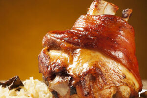 – DO KŘUPAVA PEČENÁ KOLENA 700g PODÁVANÁ NA PRKNĚ